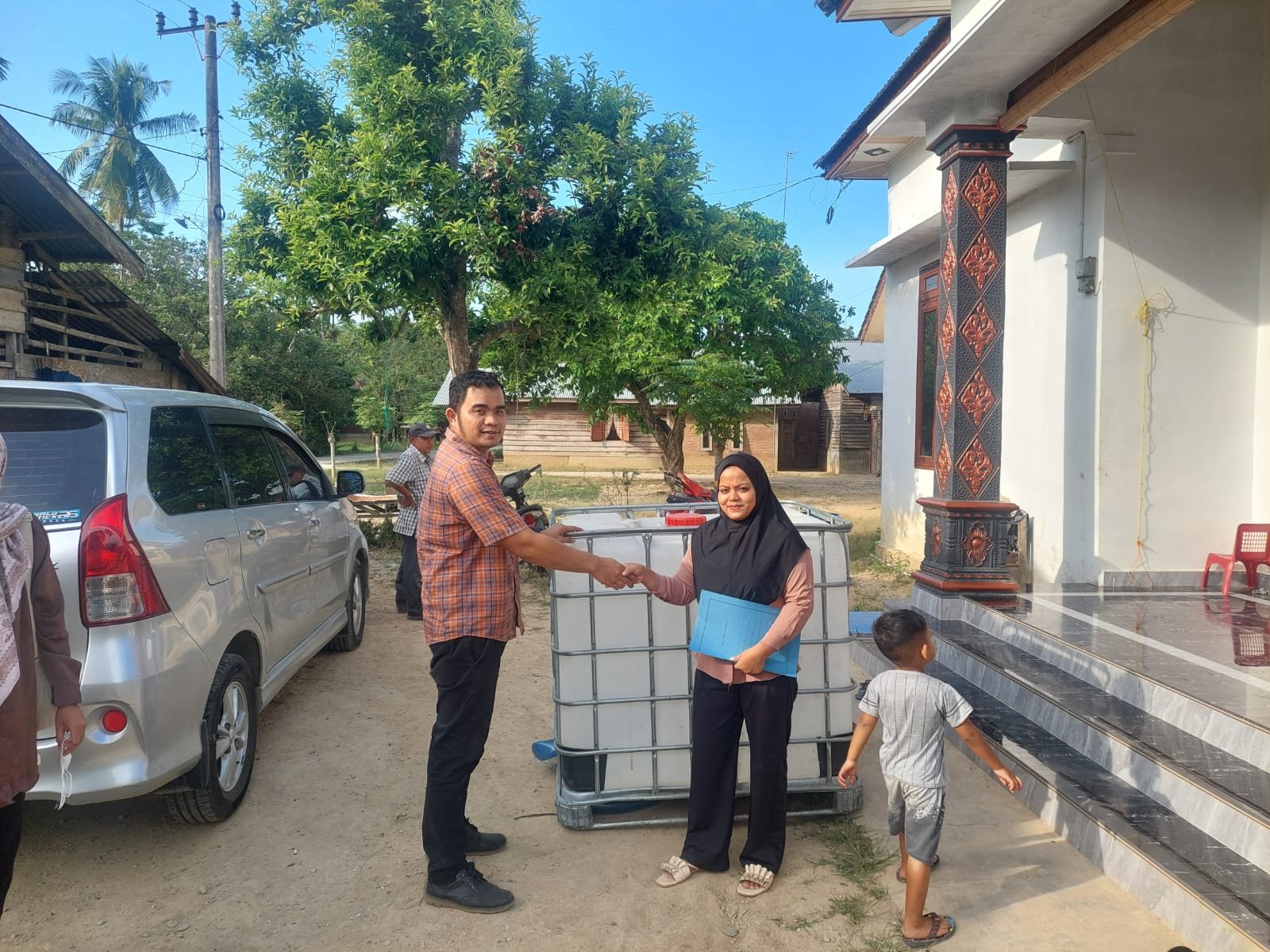 Penyerahan bantuan instalasi tandon air dan kran oleh Tim PKM Universitas Samudra, Kamis (26/2).